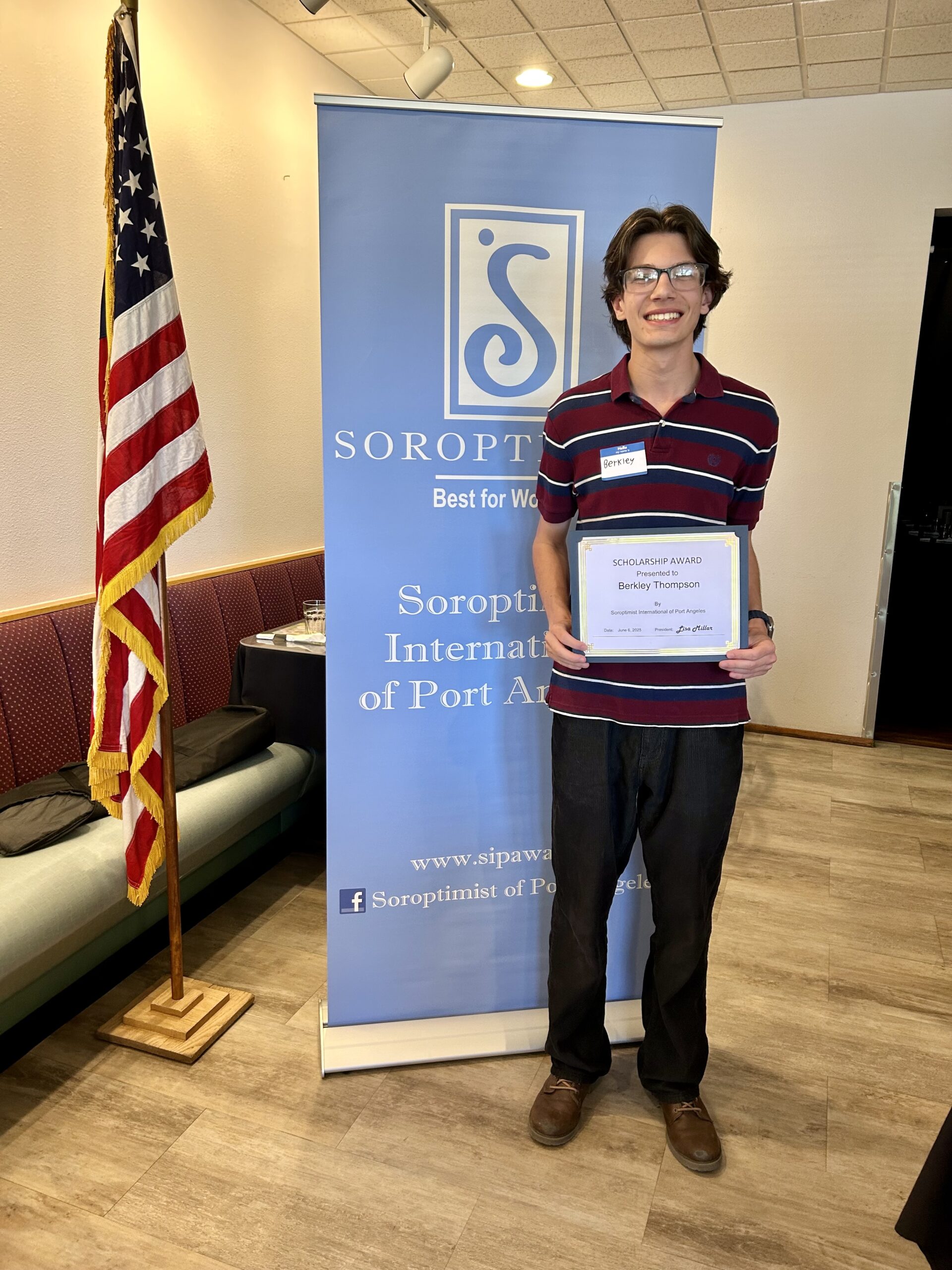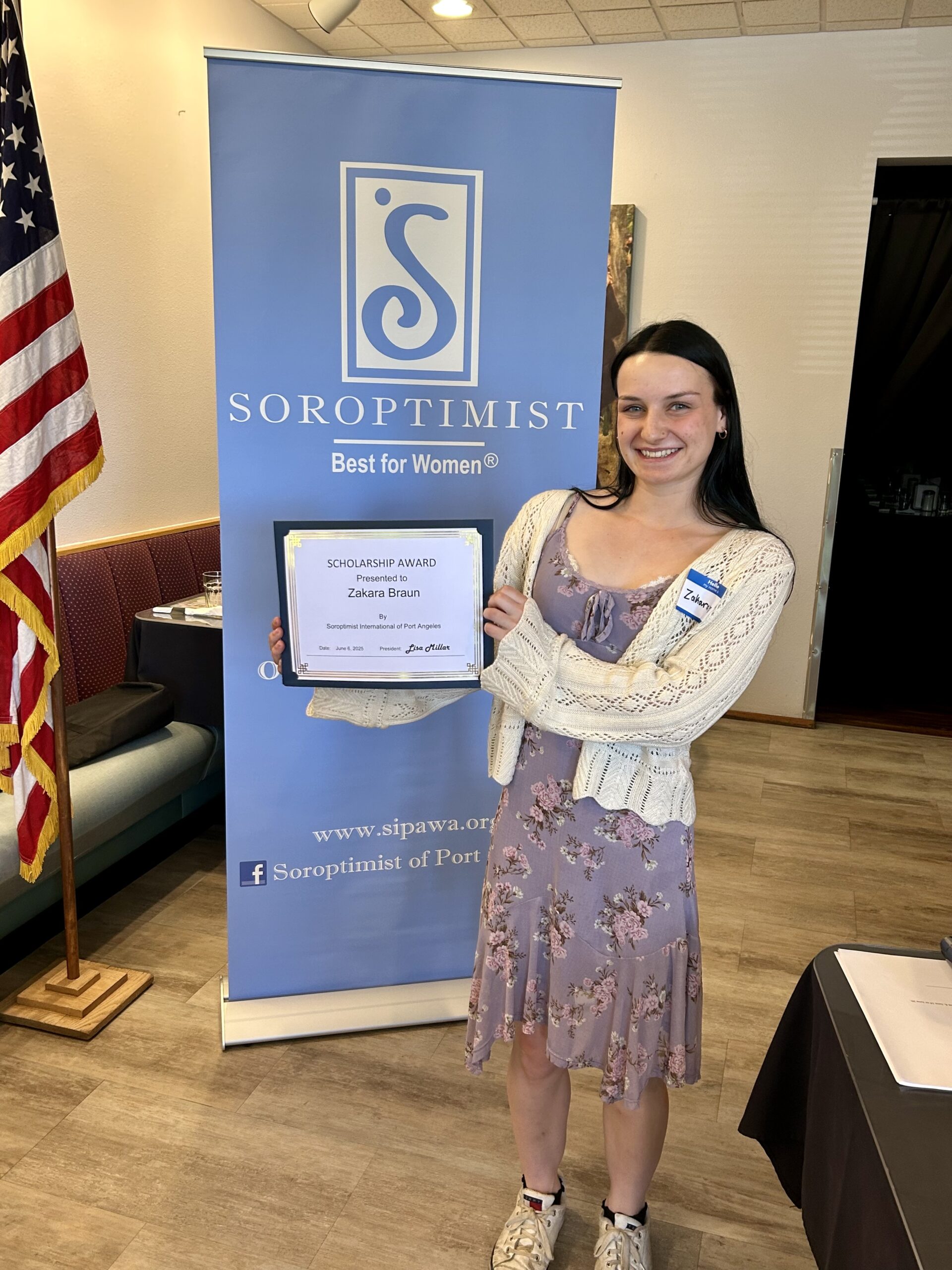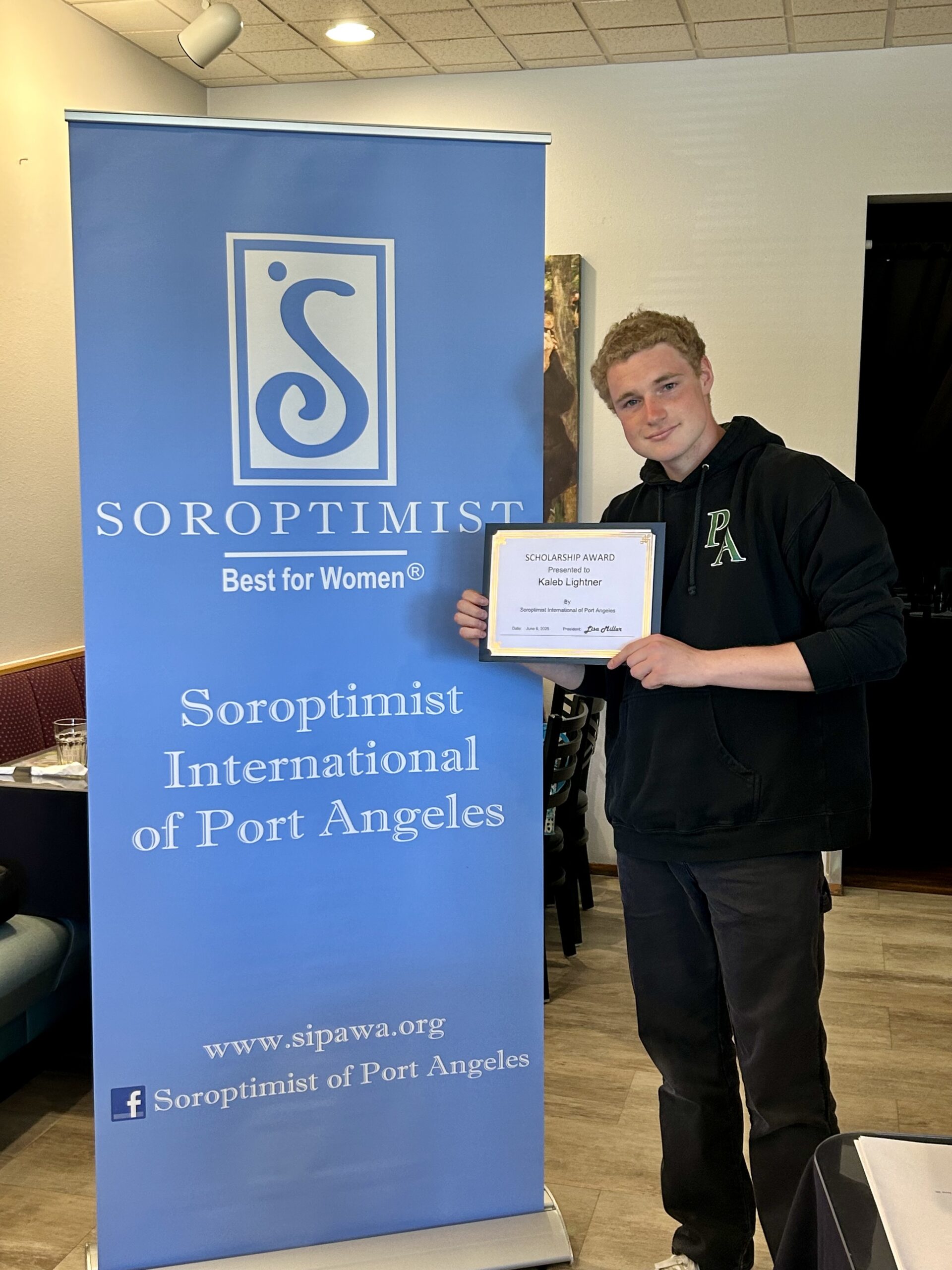 Port Angeles, WA – Soroptimist International of Port Angeles-Noon Club selected seven Port Angeles High School students to receive $1,000 academic scholarships. Student scholarship notebooks are evaluated based upon academics, leadership, school activities, community service, awards received and student employment. The students were honored June 6, 2025, at Joshua’s Restaurant.